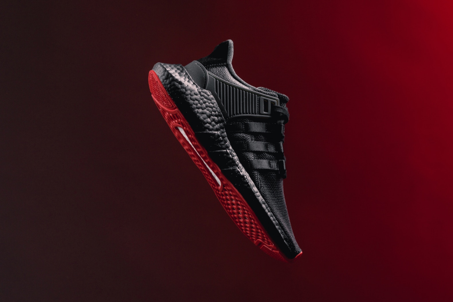 Dopo la prima variante rossa delle EQT Support 93/17, Adidas realizza una seconda versione con un tocco dello stesso colore. La variante Red Carpet utilizza il nero per il tessuto della scarpa con strap in nylon la morbida intersuola BOOST in poliuretano espanso del medesimo colore. Il rosso in questo caso è limitato alla suola esterna dotata di una trama a quadretti che si estende fino alla punta come se fosse un tappeto, appropriato visto il nome della variante. Questa versione è già disponibile online e nei migliori negozi ufficiali Adidas.