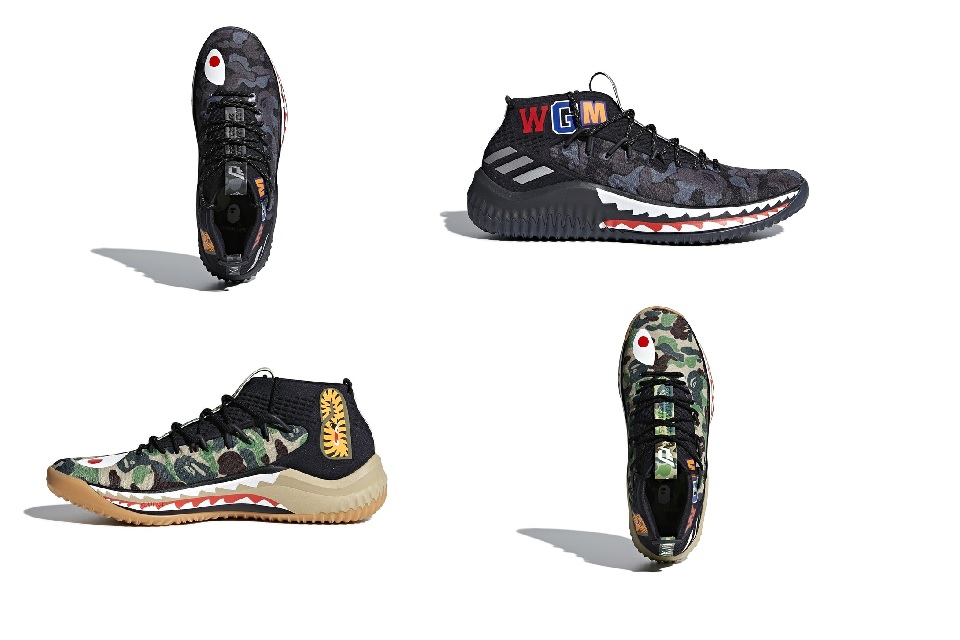 L’All-Star Weekend di NBA è un’occasione ghiotta per le case stilistiche per mostrare e pubblicizzare i loro nuovi modelli e queste Dame 4 speciali non fanno eccezione. Lo sforzo immesso da BAPE per la realizzazione di questa variante in edizione limitata in vendita a partire dal mese prossimo valorizza la silhouette firmata Damian Lillard. Due le varianti previste, una Green Camo e una Black Camo, in entrambe le edizioni si possono notare il tema ovviamente camo che contraddistingue i lati della scarpa in due colori, mentre sul profilo dell’intersuola troviamo delle stilizzate fauci di uno squalo. In aggiunta sono state applicate anche delle decorazioni che consolidano l’aspetto selvaggio di queste sneakers.