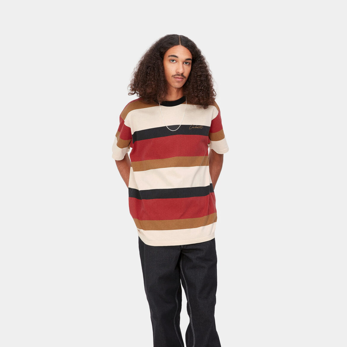 La collezione Primavera/Estate 2023 di Carhartt WIP stupisce con una vivace palette di colori audaci. I toni neutri e classici sono affiancati da accesi colori primari, creando un mix che attira l’attenzione e riflette lo spirito dinamico della stagione. I pattern innovativi, come le grafiche astratte e le stampe geometriche, sono presenti su t-shirt, pantaloni e giacche, aggiungendo un tocco di freschezza e originalità a ogni outfit.