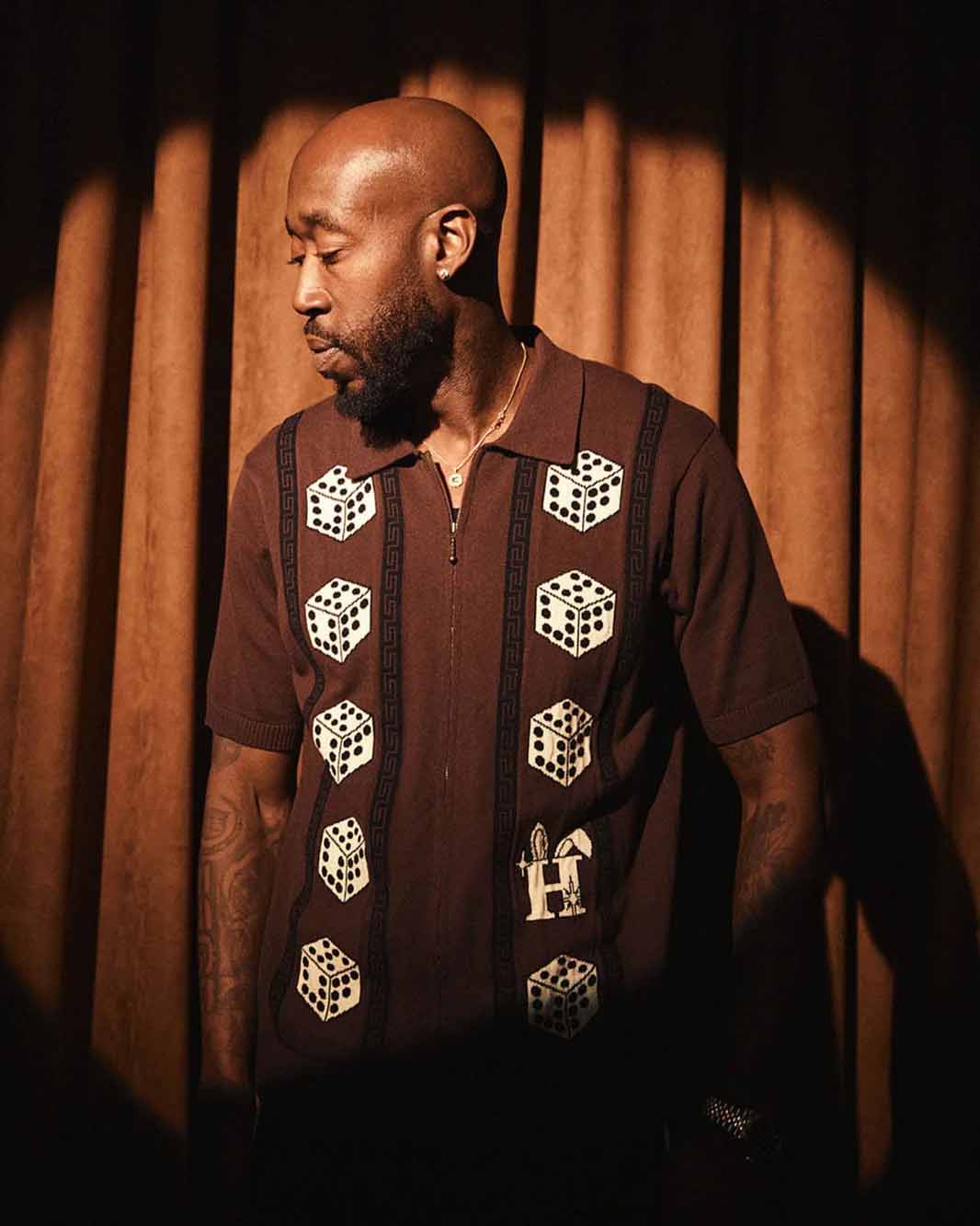 Freddie Gibbs è un rapper di Gary, Indiana, che ha guadagnato una solida reputazione nel panorama musicale per la sua abilità tecnica e le sue liriche taglienti. Con una carriera che spazia da mixtape indipendenti a collaborazioni con artisti del calibro di Madlib e Alchemist, Gibbs è diventato uno dei nomi di punta dell’hip-hop contemporaneo. La sua presenza magnetica e il suo stile distintivo lo rendono un partner ideale per HUF.