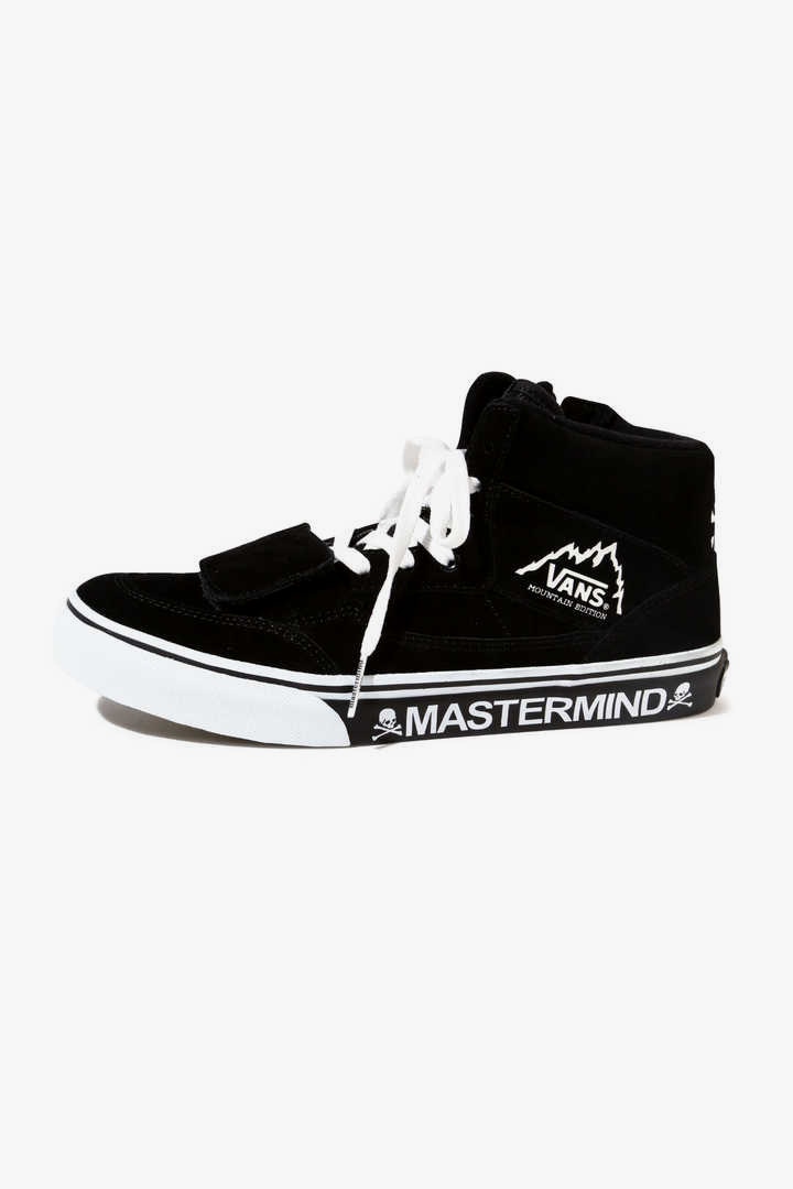 MASTERMIND riprende il design delle Mountain Edition per realizzare una nuova variante. Il design è lo stesso della versione realizzata in Ottobre, con una finitura completamente nera, set di lacci bianchi e neri e i loghi Vans applicati su ogni lato, ma in questo caso è il materiale ad essere differente. Queste scarpe sono infatti realizzare in cotone spesso invece che in pelle granulata. Sul lato è presente la zip per facilitarne l’accesso e la suola è trasparente con il classico motivo a scacchiera tipico di Vans. Data di rilascio non ancora annunciata.