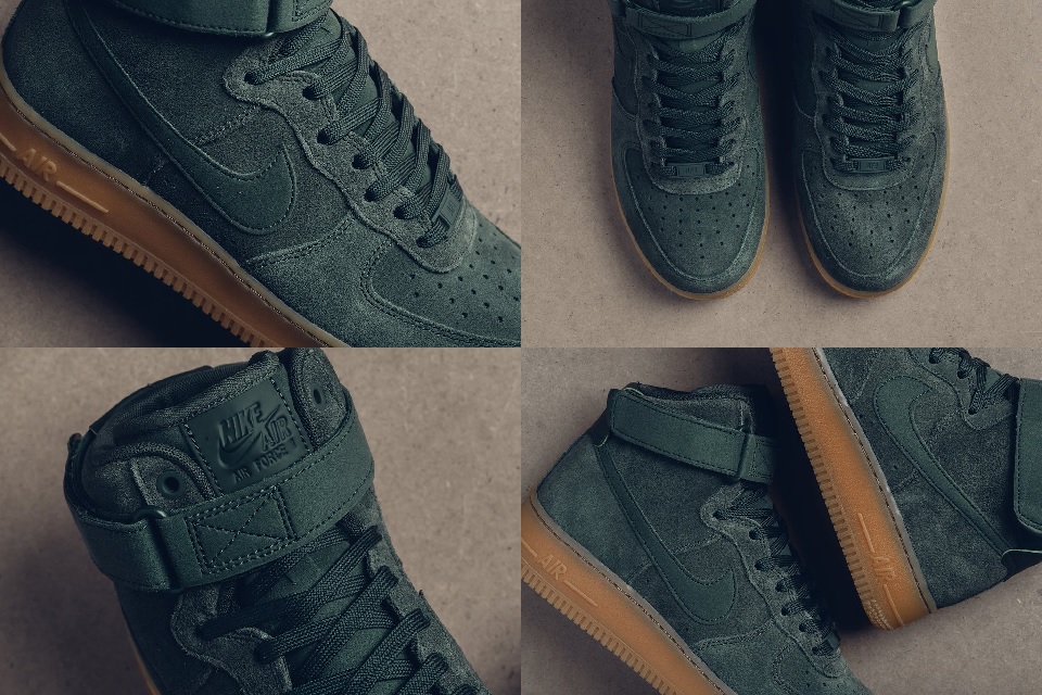 Le Air Force 1 High sono caratteristiche scarpe a collo alto tipiche della produzione Nike e ricevono una colorazione denominata Vintage Green. Questo verde scuro unito alla suola in gomma di colore marrone valorizza il tessuto in pelle scamosciata sintetica che ricopre il corpo delle sneakers, con la parte frontale traforata e lo strap in velcro sulla parte superiore che tiene insieme il collo alto. Disponibili per l’acquisto già da subito presso i migliori negozi Nike.