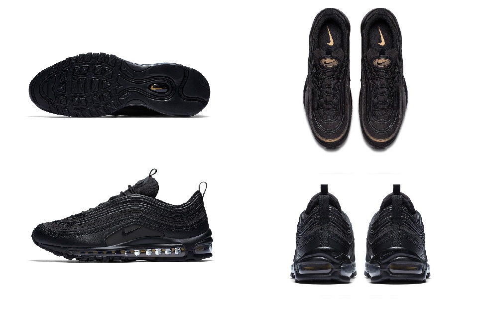 Nike presenta una colorazione oro per le sue Air Max 97. Il 2017 è stato un anno grandioso per le Air Max 97 fra varianti e collaborazioni con persone famose quali Cristiano Ronaldo. Questa nuova variante prodotta da Nike presenta una colorazione nera con dettagli oro riflettenti, in vendita dal 24 Novembre.