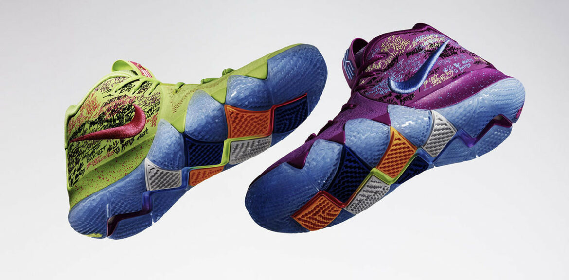 Kyrie Irving disegna una silhouette tutta nuova per Nike che prende il nome di Kyrie 4. Costruite in maglia nella sezione anteriore, queste scarpe performance presentano l’intersuola Cushlon e le unità Zoom Air nel tacco per aumentare il comfort e la presa sul terreno. Il design si fa notare per il pattern a zig zag sui lati esterni della suola. Le Kyrie 4 verranno lanciate in due diverse colorazioni: la prima è bianca e nera e sarà disponibile a partire dal 20 Dicembre, mentre la più stravagante colorazione “Confetti” presenta forti contrasti tra blu, verde, arancione e viola e riporta graffiti sul tessuto, disponibili già da subito.