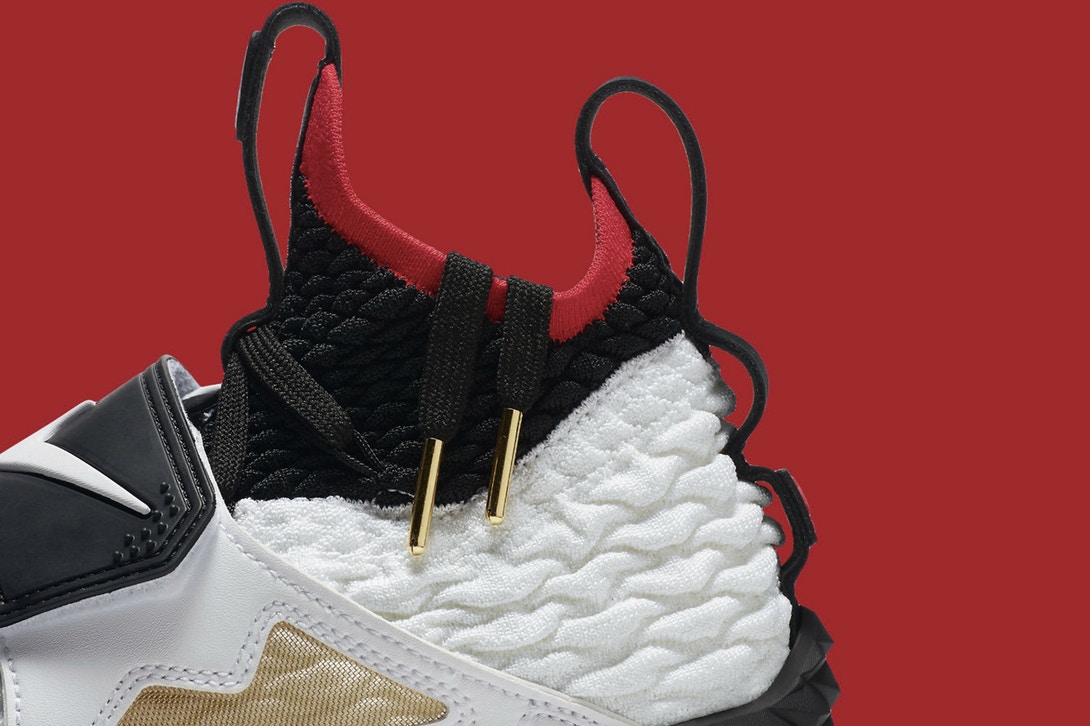Per supportare il relativamente recente lancio delle LeBron 15, Nike continua a sfornare sempre nuove varianti. Facenti parte del programma LeBron Watch ideato da Nike e ispirate alle vecchie Nike Air Diamond Turf, la versione Diamond Turf utilizza un tessuto intrecciato a onde bianco per il corpo della scarpa, capace di fornire flessibilità e leggerezza utili allo scopo sportivo per cui è stata concepita tale silhouette. La parte superiore e la parte inferiore sono invece nere, colore utilizzato anche per l’intersuola, mentre la suola è divisa in tre separate sezioni con quella centrale di colore rosso che si alterna alle due bianche esterne. Il vistoso strap superiore è dotato del logo delle Air Diamond Turf del 1993. Questa versione è disponibile per l’acquisto tramite l’app ufficiale di Nike.