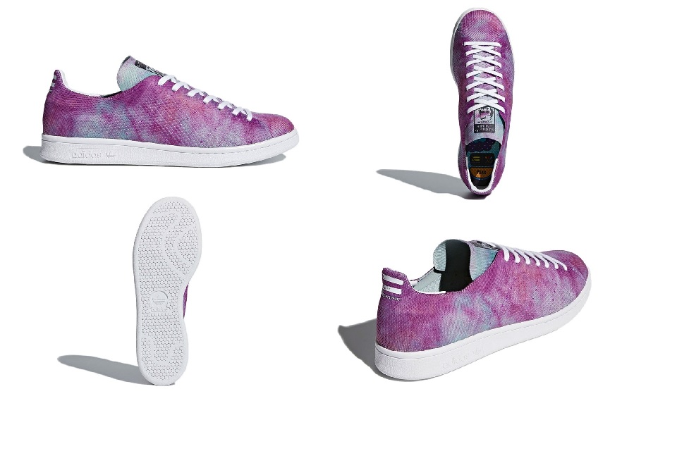 Pharrell Williams continua a realizzare varianti in collaborazione con Adidas, mettendo un attimo da parte le Hu NMD e le Tennis Hu per rivisitare invece le Stan Smith. La colorazione realizzata per celebrare l’arrivo del festival indiano Holi in arrivo a breve mette in mostra lo spirito della festività, utilizzando una tonalità viola dal nome di Lab Purple che imita l’effetto di una bomboletta spray. A complementare il viola sono presenti sprazzi blu utili a smorzare i toni e a donare l’impressione che queste scarpe abbiano davvero attraversato l’Holi. Il resto della scarpa è provvisto della suola bianca standard di Adidas, con i loghi del costruttore e Pharrell disposti sul tacco e sullo strap superiore. In arrivo presso i migliori negozi Adidas intorno alla seconda settimana di Marzo.