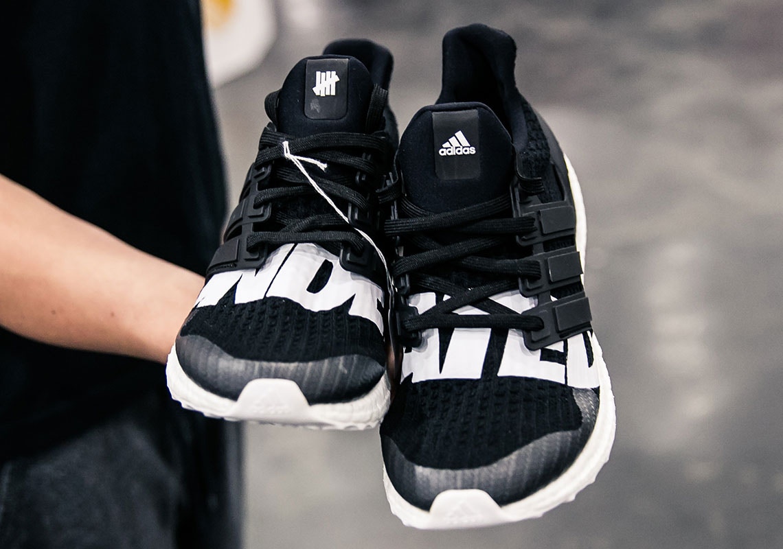Adidas è un marchio particolarmente affezionato a UNDEFEATED e queste UltraBOOST 4.0 personalizzate sembrano voler rafforzare questo sentimento. Il paio visto nelle immagini rilasciate mostrano il tessuto Primeknit di colore nero che viene decorato dal branding UNDFTD a grandi caratteri che si estende continuativamente su entrambe le scarpe, mentre rimangono immutati la gabbia in TPU nera a forma di tre strisce parallele e la suola Continental bianca che si estende fino alla punta. Voci di corridoio danno l’entrata di queste sneakers in commercio intorno ai primi mesi del 2018, quindi restiamo in attesa di una conferma ufficiale.