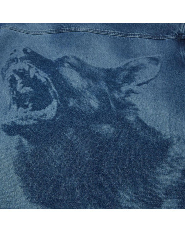 Built with classic workwear lines, the Beware Work Jacket features custom engineered laser artwork and subtle embroidered details.