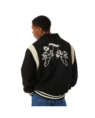Modeled after the lines and aesthetics of our favorite vintage collegiate jackets, the Song Varsity Jacket, features chain-stitched details, embroidered Cherub artwork, and a polyester-wool construction with quilted lining.