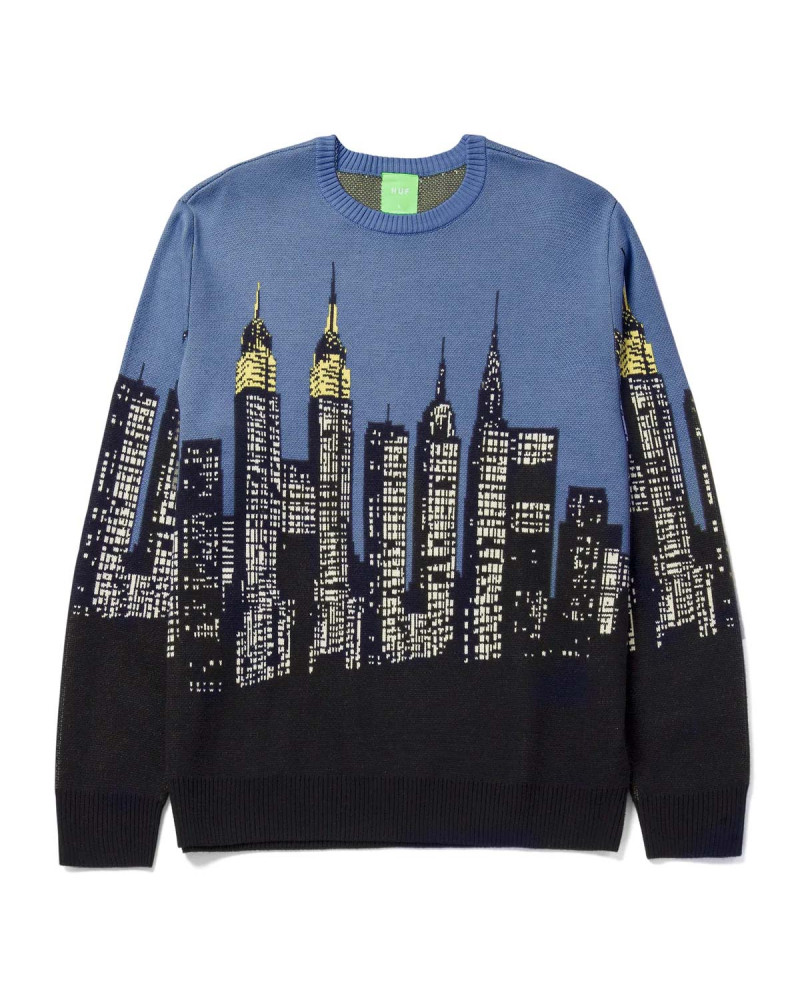 A nod to vintage souvenir garments, the Skyline Crew Sweater is made of super-soft cotton-acrylic and features custom HUF NYC cityscape artwork in all-over jacquard knit. Part of this season's HUF City Pack, the pullover is complete with rib-knit trims for a secure fit.