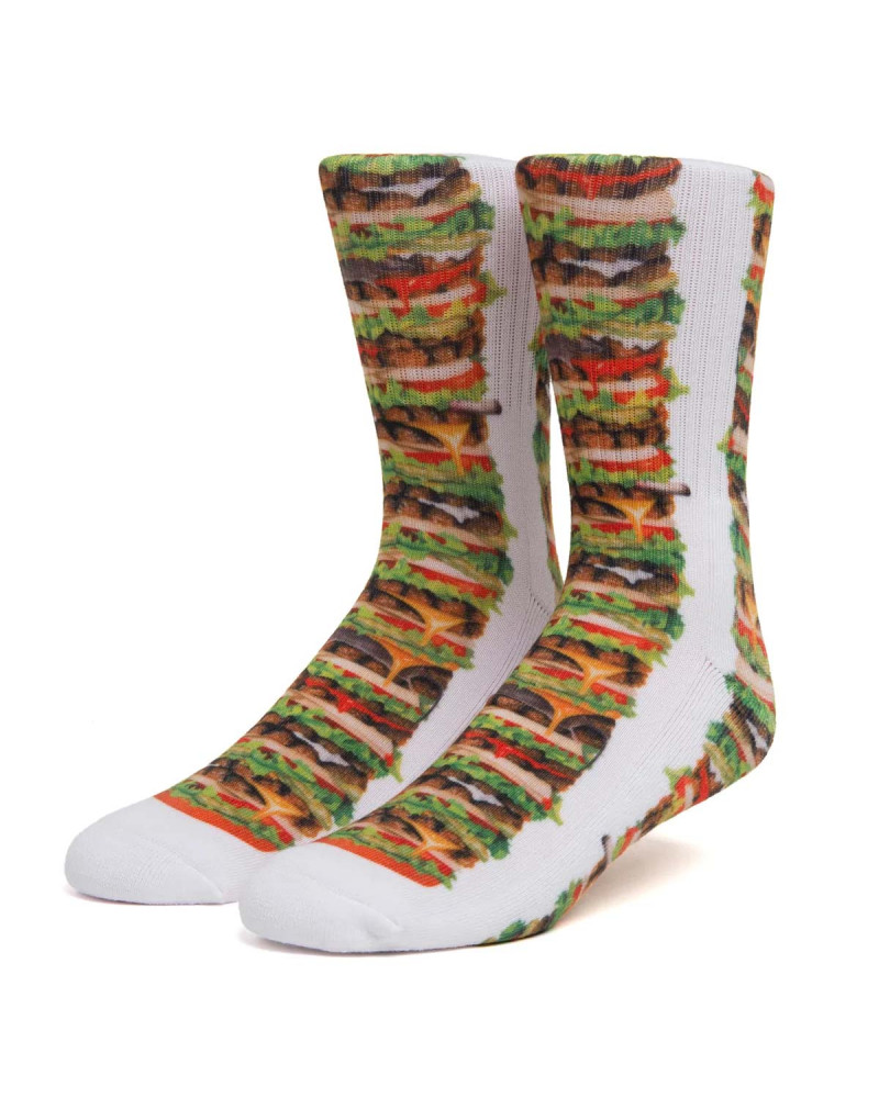 The Sock features a seasonal fiery dice repeat motif over a solid color body and is complete with a HUF logo at the cushioned footbed.