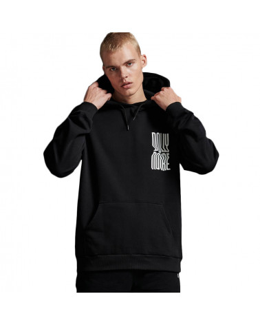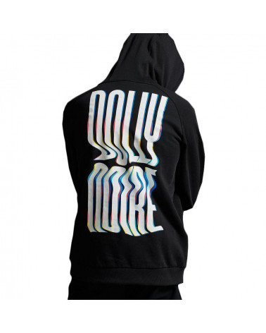 La felpa Dolly Noire con cappuccio ti immerge completamente in uno stile street deciso, ideale e facile per tutti i giorni,  grazie alla morbida felpa garzata che miscela cotone e polyester. Questa felpa ha una tasca frontale scaldamani a marsupio, un cappuccio regolabile con cordino e una stampa serigrafata sul petto e sul retro.