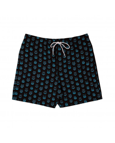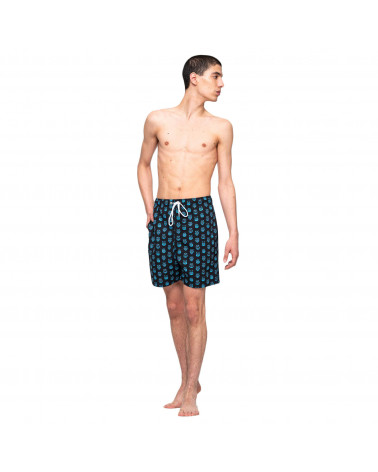 100% poliestere, microfibra pesca, costume da bagno in vita elasticizzato con cucitura esterna di 17", fodera in rete, tasche laterali e tasca posteriore, stampa all over e stampa sulla tasca posteriore.
