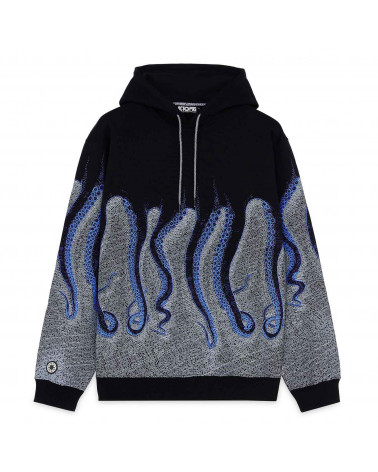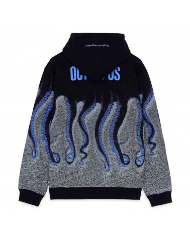 Felpa con cappuccio nera. Stampa tentacoli su fronte, retro e maniche. "Octopus is everywhere".