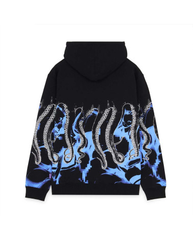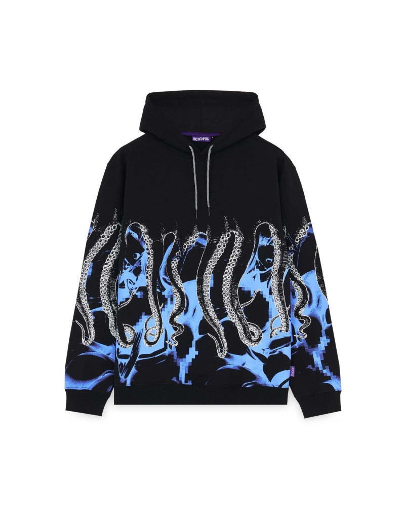 Felpa con cappuccio nera. Omaggio al Shokushu Goukan, un genere di hentai giapponese che prevede massiccia presenza di mostri e animali tentacolari.