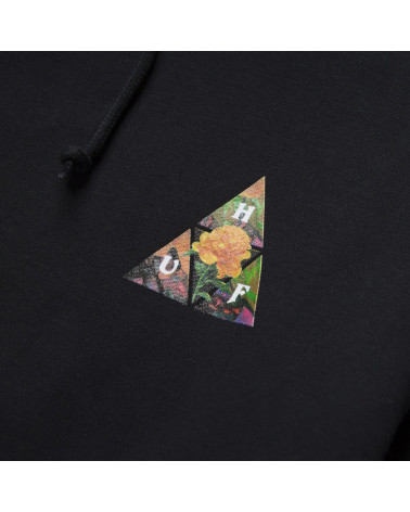 La felpa con cappuccio New Dawn Triple Triangle Pullover è realizzata in morbidissimo cotone e presenta un triplo triangolo HUF con motivi floreali stampati sul petto a sinistra e sulla schiena.