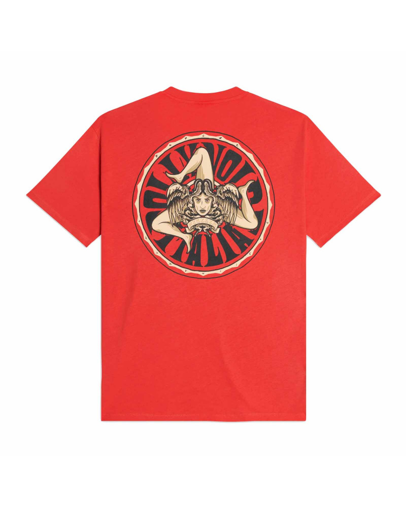 La Trinacria, antico simbolo religioso raffigurante il dio del sole e da tempo simbolo della Sicilia, stampata su t-shirt a maniche corte.